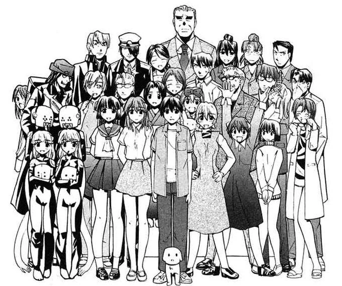 Elfen lied takes place in kamakura japan focusing on a new strain of the human race diclonius similar to human beings but different at the genetic level and notable due to physical abnormalities particularly a pair of short horn like protrusions. It was originally serialized in shueishas weekly young jump from june 2002 to august 2005 with the 107 chapters collected into twelve tankobon volumes. The elfen lied cast in the manga.